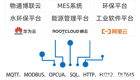 支持通过MQTT、MODBUS、OPCUA、SQL、HTTP数据库等方式接入远端软件平台(包含:伟德软件官方网站下载安装手机版云平台,客户自主开发的云平台,根云、美云、华为、阿里、百度、微软等IOT云平台,组态软件、MES系统、ERP系统等工业软件)