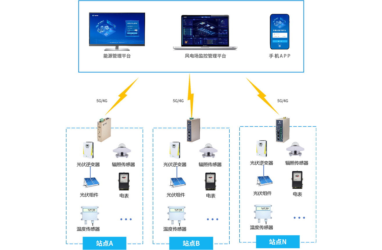 分布式光伏电站通过伟德软件官方网站下载安装手机版的工业通信网关将采集到的光伏数据(如发电量、设备温度、辐照强度等)传输至光伏监控管理平台。平台对数据进行分析,实时评估发电效率,监测设备状态,当出现故障时及时预警并提供故障诊断和处理建议,同时支持远程运维操作和能源优化调度。