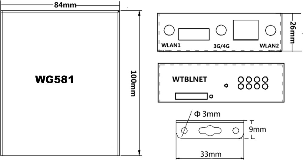 | Example | WG581-LL07-MQTT-232: Support 4G CAT4 seven-mode full Netcom, support general MQTT platform, RS232 interface WG581-LQ2S-WMQTT-485: Support 4G CAT1, support WideIOT WMQTT platform, RS485 interface WG581-WLAN-WMQTT -485: Support 2.4G WIFI, support WideIOT WMQTT platform, RS485 interface |