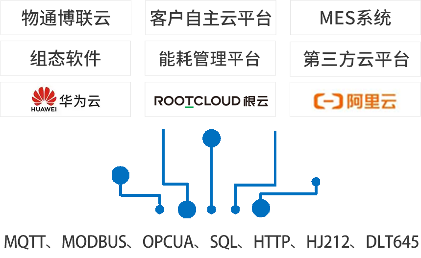 丰富云端协议:支持MQTT、HTTP、TCP、OPC UA、Modbus-TCP、SQL