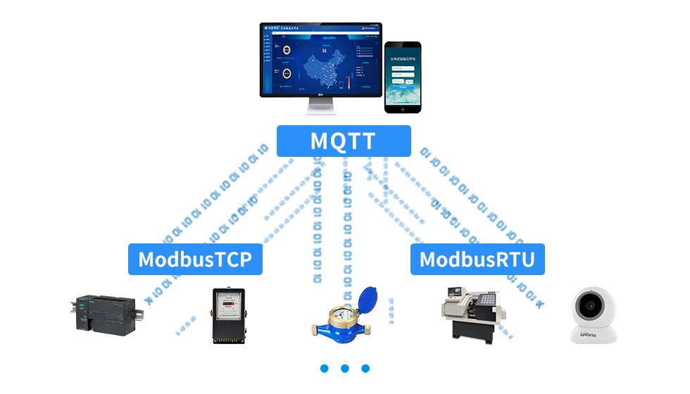 支持采集各种Modbus-TCP和Modbus-RTU协议的设备数据,并将数据通过MQTT协议上传到云平台