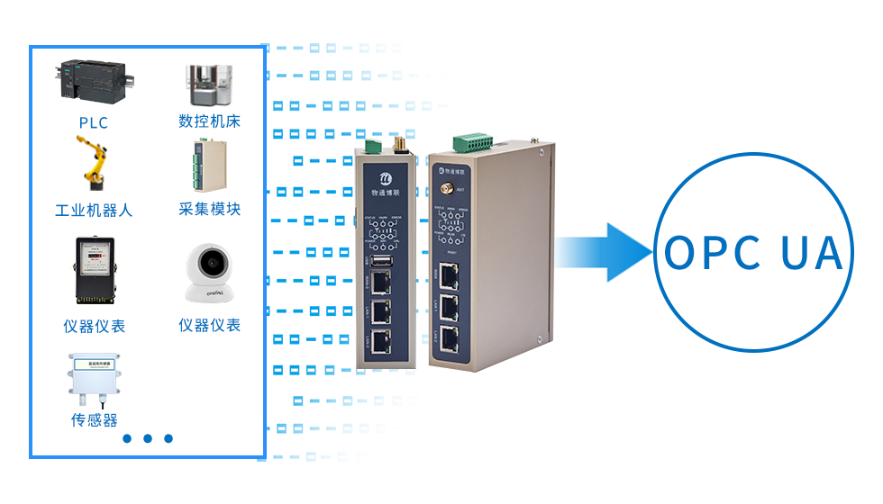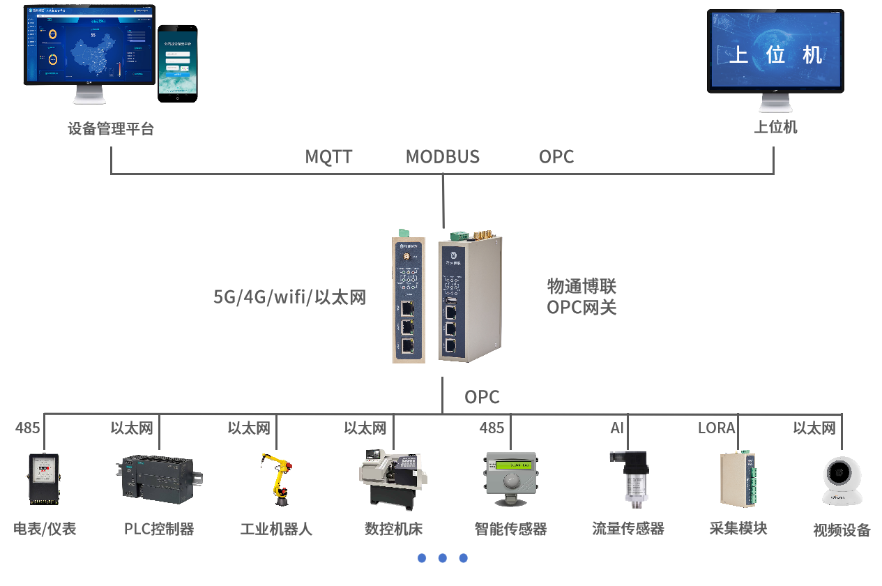 支持采集各种工控设备、DCS、SCADA系统数据,并将数据通过OPC UA协议转发给组态软件、上位机软件、云平台