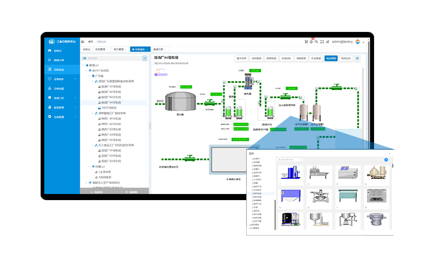 通过将网关的数据接入到伟德软件官方网站下载安装手机版工业数据云平台,可以实现对PLC的数据进行远程监控,通过平台的组态功能可以自由绘制组态监控画面,实现电脑端和手机端的设备运行状态和工艺流程的可视化组态监控。